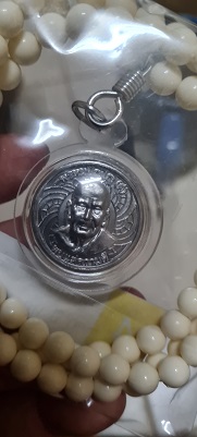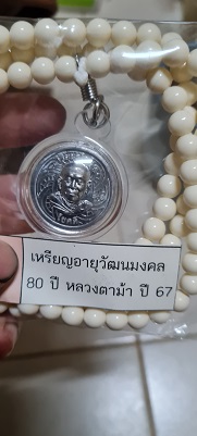 เหรียญอายุวัฒนมงคล 80 ปี เนื้อตะกั่ว(มีค่าดั่งทองคำ)หลวงตาม้า วัดถ้ำเมืองนะ พร้อมรอยจารหลวงตาม้า เลี่ยมจากวัดพร้อมประคำ