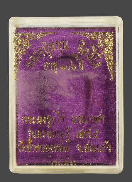 กล่องใส่พระผงดวงเศรษฐี หลวงปู่หมุน รุ่นเสาร์5มหาเศรษฐี ปี2543 เอาไว้ใส่เพื่อเพิ่มมูลค่าพระเครื่องหรือใส่เพื่อเก็บรักษาพระเครื่องไว้แบบเดิมๆคากล่องครับ