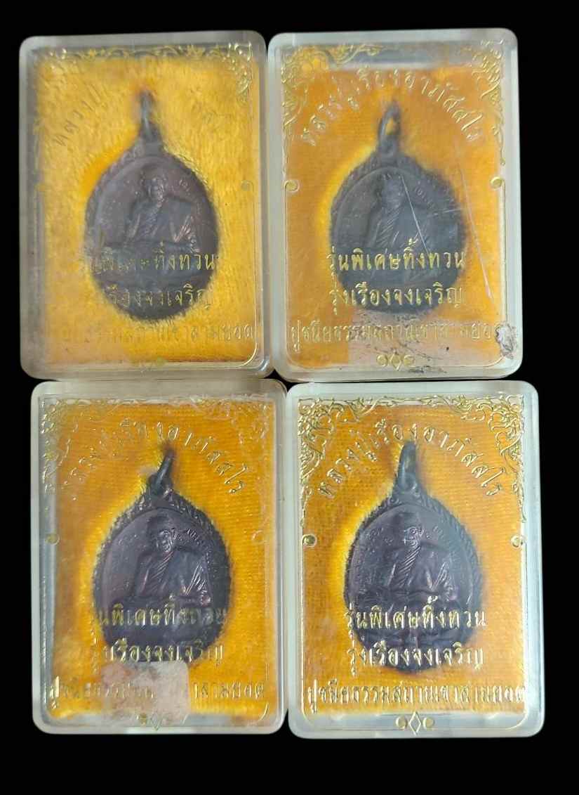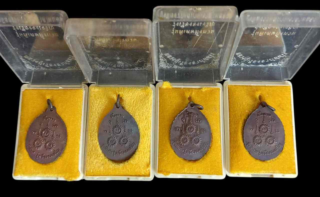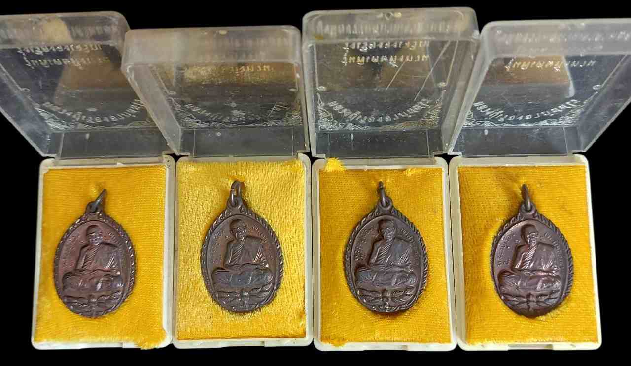 วัดใจเคาะเดียวแดง เหรียญหลวงปู่เรือง วัดเขาสามยอด รุ่นทิ้งทวน(รุ่น4) จ.ลพบุรีเนื้อทองแดงจำนวน4องค์พร้อมกล่องเดิม |