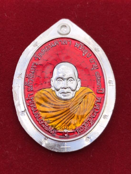 เหรียญพระอาจารย์นำ ชินวโร วัดดอนศาลา จ.พัทลุง รุ่น 123 ปี ชาตกาล เนื้อเงินลงยาแดง ไม่ตัดปีก โค๊ต 9 รอบ หมายเลข 78 (สร้าง 99 เหรียญ) พร้อมกล่องเดิมๆ |