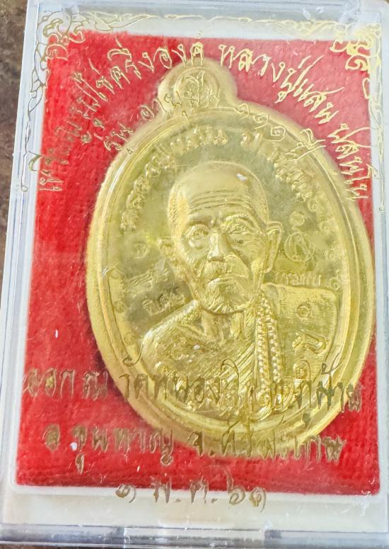 เหรียญ หลวงปู่แสน ปสนฺโน วัดหนองจิก ต.ภูฝาย อ.ขุนหาร จ.ศรีษะเกษ เนื้อทองคำไม่ตัดปีกกรรมการ9รอบ หมายเลข1 น้ำหนักทองคำ23.7กรัม มีกล่องครับ