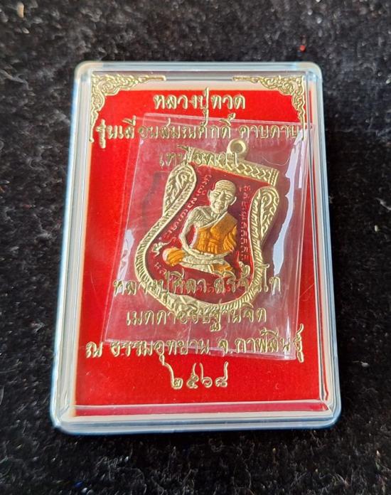 วัดใจ หลวงปู่ทวด หลวงปู่ศิลา เมตตาอธิษฐานจิต รุ่นเลื่อนสมณศักดิ์ เหนือดวง เนื้อทองทิพย์ ลงยา No.77 |