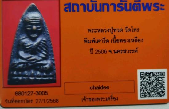 หลวงปู่ทวดหลังเตารีด วัดไทรใต้ ปี 2506 อาจารย์ทิม วัดช้างไห้ ปลุกเสกพร้อมบัตร
