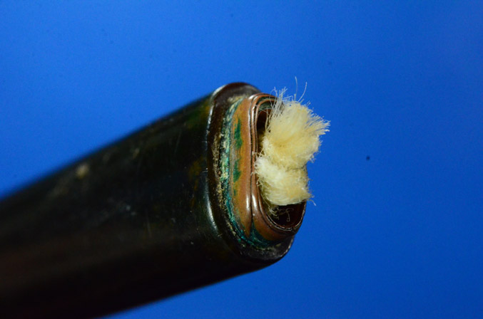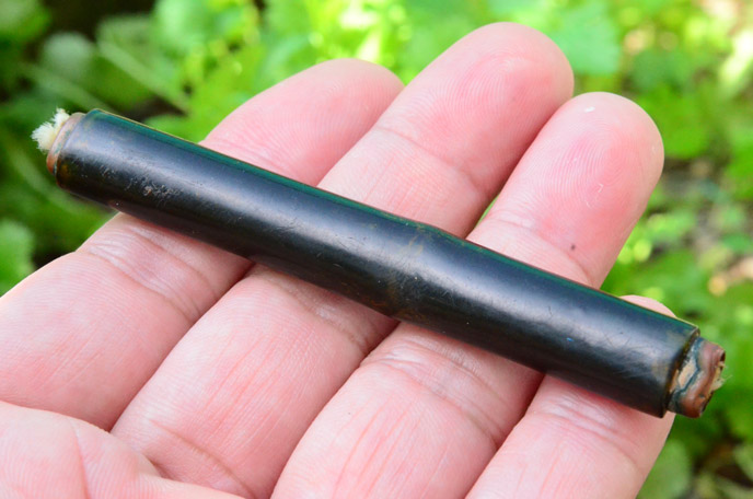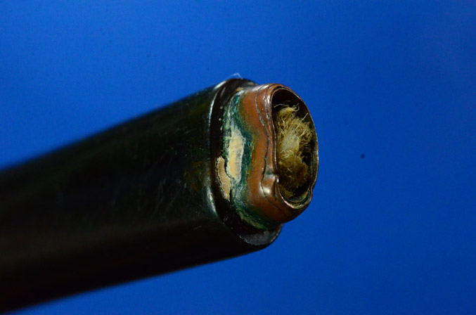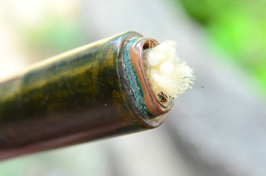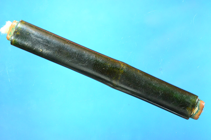 ตะกรุด เนื้อทองแดง เก่าไม่ทราบที่ครับ เจ้าของเดิมหุ้มหลอดยางไว้ครับ |
