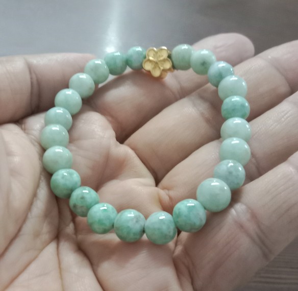 สร้อยขัอมือหยก(พม่า)/ขนาด8มิล/ร้อยยางยืดใส่สบาย/สินค้ามือ1/เส้นที่1 |