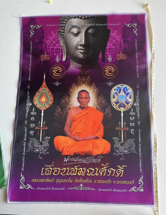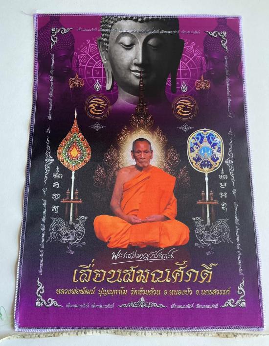 หลวงพ่อพัฒน์ วัดห้วยด้วน จ.นครสวรรค์ ผ้ายันต์เลื่อนสมณศักดิ์ ผืนใหญ่ขนาด กว้าง 34 ซม สูง 49 ซม เลข 650 |