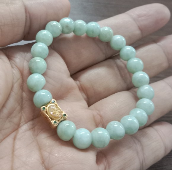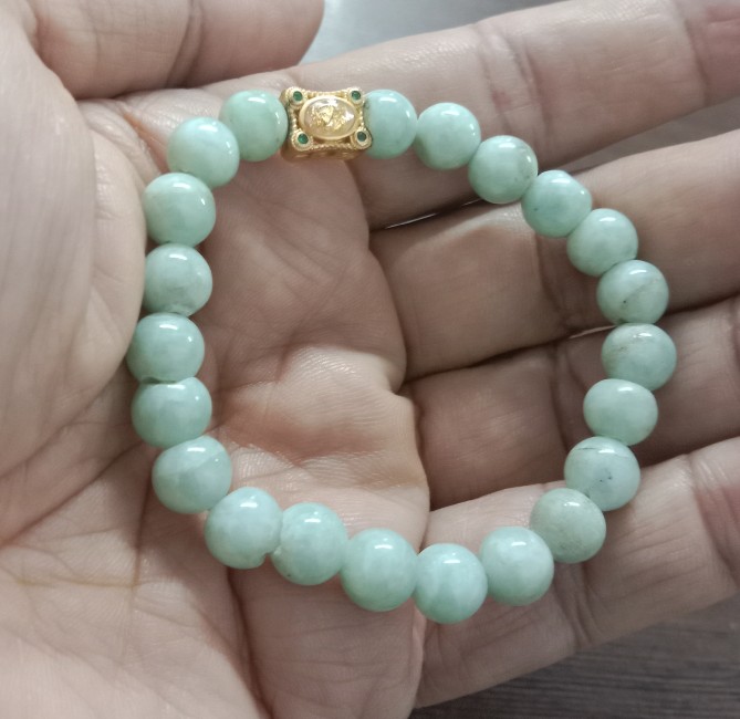 สร้อยข้อมือ(หยกพม่า)/ขนาด8มิล/ร้อยยางยืดใส่สบาย/สินค้ามือ1/เส้นที่2 |