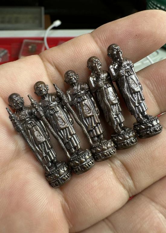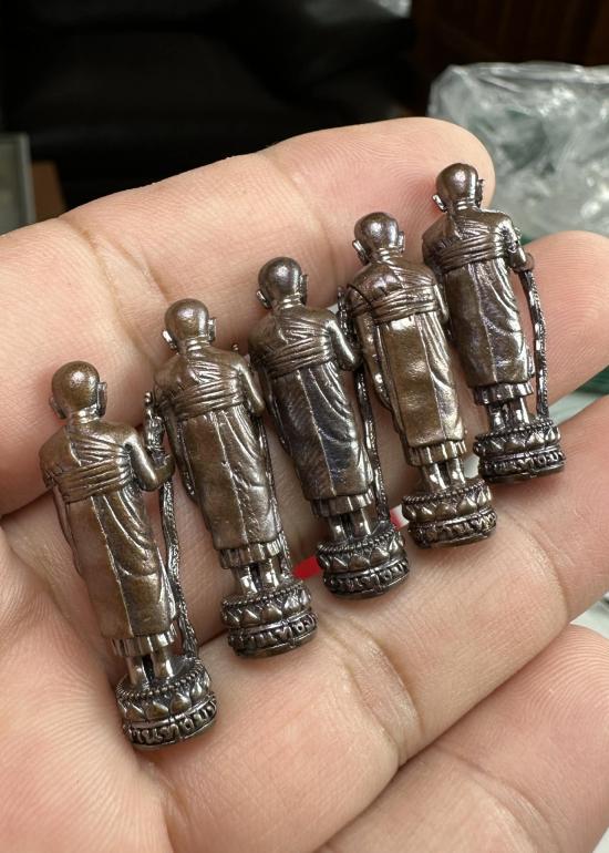 5 องค์ รูปหล่อยืนถือไม้เท้า อุดผงใต้ฐาน หลวงปู่หงษ์ พรหมปัญโญ สุสานทุ่งมน จ.สุรินทร์ ปี 2555 |