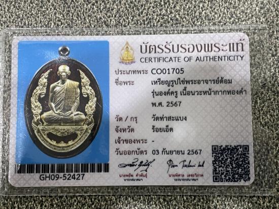 (เคาะแดง19000) +บัตรสมาคม เหรียญพระอาจารย์ต้อมหลังหนุมาน นวะองค์ทองคำ