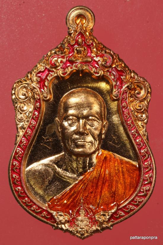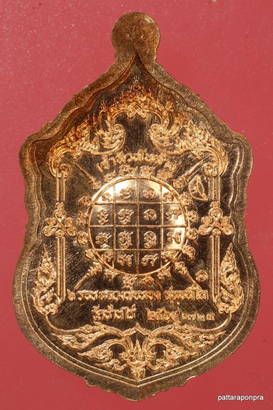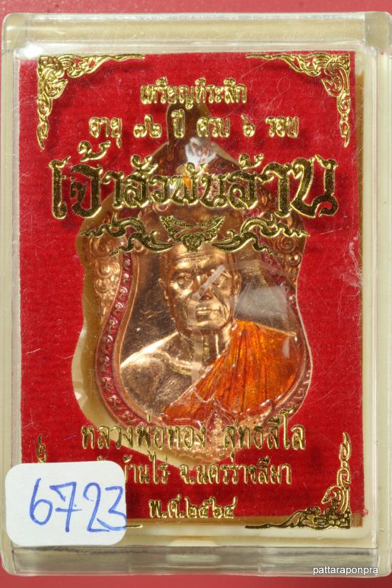 เหรียญเสมา หลวงพ่อทอง รุ่นเจ้าสัว ปี 2564 วัดบ้านไร่ เนื้อทองแดงลงยาขอบ ลงยาจีวร มีจารหลวงพ่อทอง หมายเลข 6723