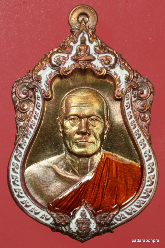 เหรียญเสมา หลวงพ่อทอง รุ่นเจ้าสัว ปี 2564 วัดบ้านไร่ เนื้อทองแดงลงยาขอบ ลงยาจีวร หมายเลข 7453