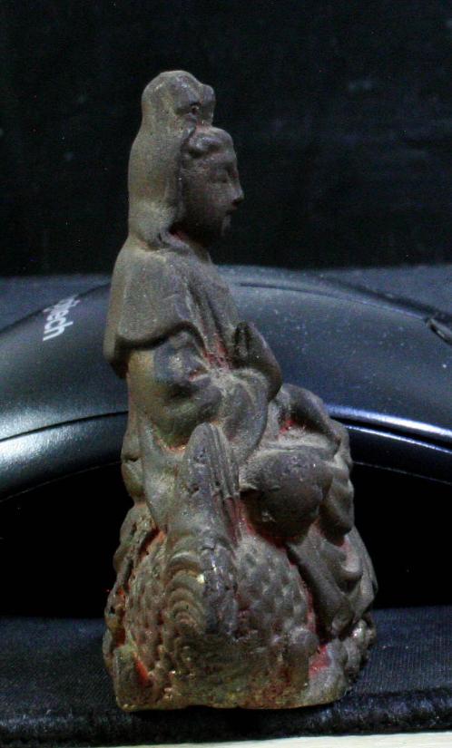 รูปหล่อโลหะ เจ้าแม่กวนอิม ประทับบนปลามังกร สวย คลาสิค ไม่ทราบที่ ชมก่อน ขนาด 2.5 x 3 นิ้ว เข้มขลัง บูชาดีมาก