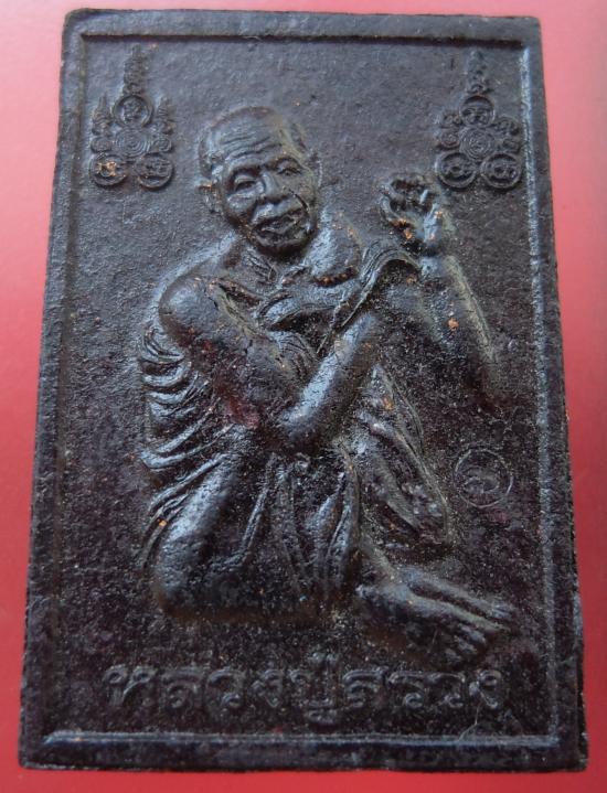 พระผงรูปเหมือน หลวงปู่สรวง หลังหลวงพ่อสร้อย เนื้อไพลดำ ปี 2526