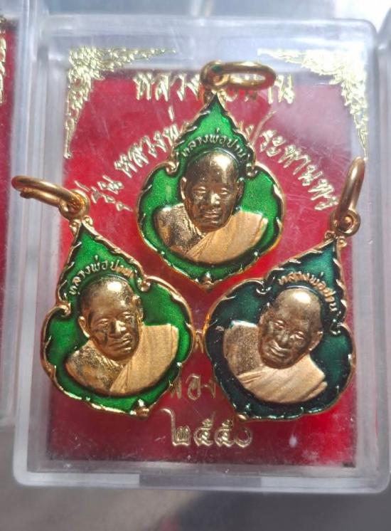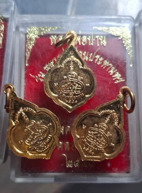 รับ3เหรียญ เหรียญหยดน้ำรุ่นหลวงปู่ปานประทานพร วัดมงคลโคธาวาส ปีพ.ศ 2550 เนื้อกะไหล่ทองลงยาสวยๆๆ |