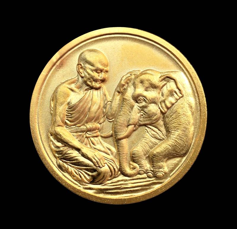 +!!เคาะเดียวllดง ตลอดสาย!!+ (หมายเลข 9) เหรียญตำนานสามเณรเลี้ยงช้าง ศิษย์หลวงพ่อเดิม รุ่นโชคดี หลวงปู่ฝั้น ปสาโท วัดศรีถมอรัตน์(หน้าผา) จ.เพชรบูรณ์ (เนื้อชุบทอง พ่นทราย เลขสวย หมายเลข 9 ) พร้อมกล่องครับ