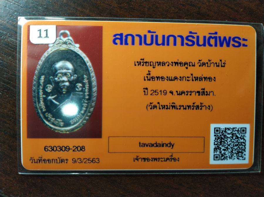 เหรียญหลวงพ่อคูณ ปี2519 วัดใหม่พิเรนทร์ เนื้อกะไหล่ทอง มีบัตรการันตีพระ