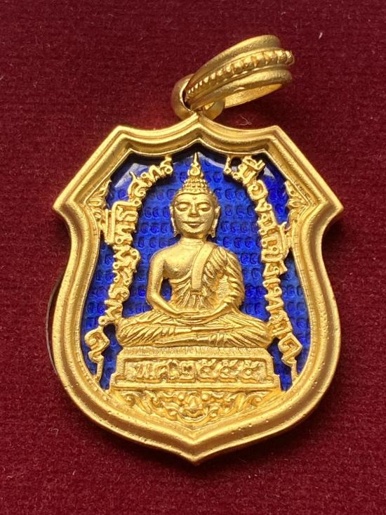 เคาะเดียวแดง หลวงพ่อโธร รุ่น มหามงคลย้อนยุค เลข199 เนื้อ ชุบทองลงยานำ้เงิน