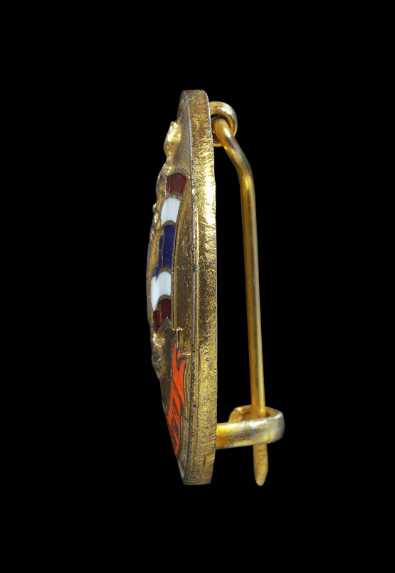 เข็มกลัดย่าโม ( 1 นิ้ว ) รุ่น โคราชพัฒนา ( เนื้อโลหะกะไหล่ทองลงยา ) ปลุกเสกโดย หลวงพ่อคูณ พ.ศ.2534 |