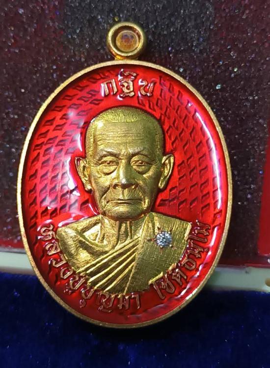 เหรียญกฐินปี67 เนื้อชุบทองลงยาแดง ฝังเพชร No.77 |