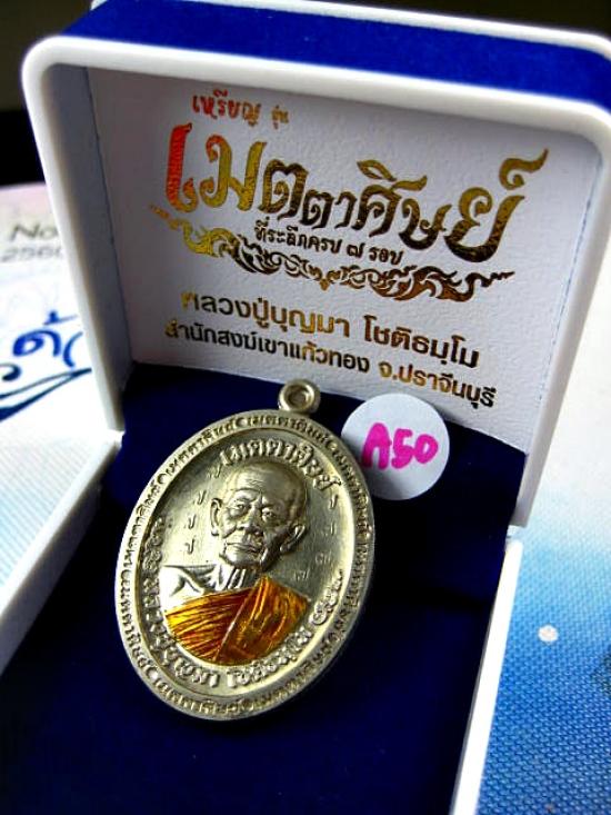 เหรียญเมตตาศิษย์ ที่ระลึก 7 รอบ หลวงปู่บุญมา โชติธมโม สำนักสงฆ์เขาแก้วทอง เนื้ออัลปาก้า ลงยาจีวร (---A50---) |