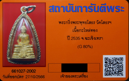 พระกริ่งหลวงพ่อโสธร ภปร. พิมพ์เล็กชุบทอง วัดโสธรวราราม จ.ฉะเชิงเทรา ปี 2535 บัตรรับรอง GPra ++เคาะเดียว++ |