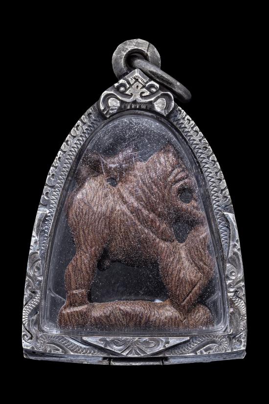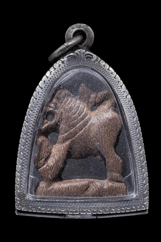 คชสิงห์เลี่ยมเงินโบราญ หลวงปู่รอด วัดบางน้ำวน จ.สมุทรสาคร เนื้อแก่นไม้ขนุนตายพราย นับเป็นอีกหนึ่งสุดยอดเครื่องรางที่หายากมากมานานแล้วตั้งแต่อดีตจนถึงปัจจุบันนี้ยิ่งหายากมาก มีหมุนเวียนอยู่ในวงการน้อยม |