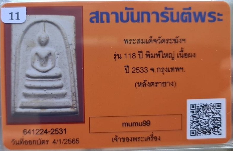 ## สมเด็จวัดระฆัง อนุสรณ์ 118ปี พ.ศ.2533 พิมพ์ใหญ่ "พระสวยเดิมไม่ผ่านการใช้.หลังปั้มตรายาง...พร้อมบัตรรับรอง.""รับประกันแท้ตลอดฃีพและแท้ตามมาตรฐานสากล....... อนาคตดี ถูกๆเลยครับ.... ราคายังไม่แรง....ไ |