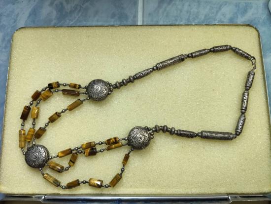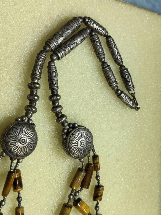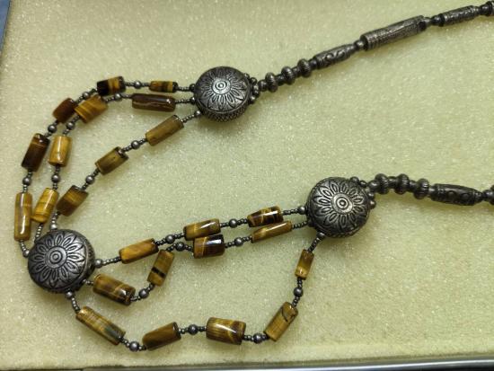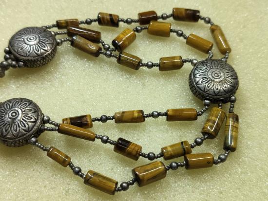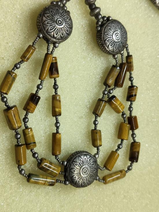 สร้อยบุเงินสลับหินไทเกอร์สวยๆ น้ำหนักรวมชั่งได้ 39 กรัม สำหรับสตรีใส่ครับ