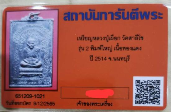 [[วัดใจ1500]] เหรียญรุ่น2 หลวงปู่เผือก วัดสาลีโข (เหรียญธรรมมาสใหญ่) ปี 2514 สวยๆๆ พร้อมบัตรรับรอง G-Pra |