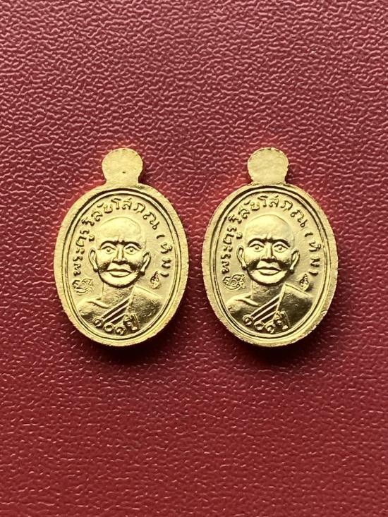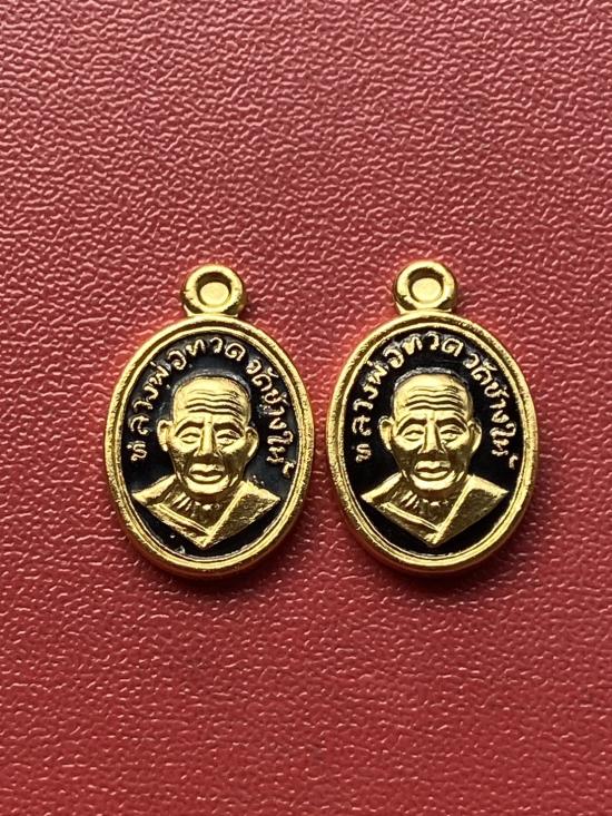 เคาะเดียวแดง เม็ดแตง 2องค์หลวงปู่ทวด รุ่น101ปี เนื้อ ชุบทองลงยาดำ |
