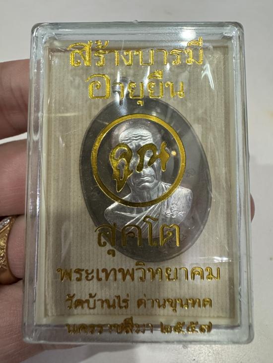 เหรียญอายุยืน คูณ สุคโต ปี2557 เนื้อนวะโลหะ หน้ากากเงิน no.71 มีกล่อง