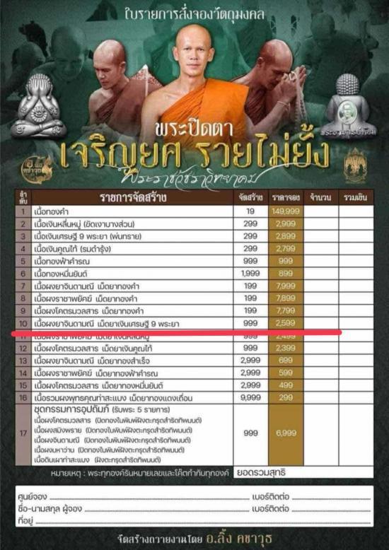 รับประกันแท้(ซีลเดิม) จำนวนการสร้าง 999 องค์ ราคาจอง 2599 บาท |