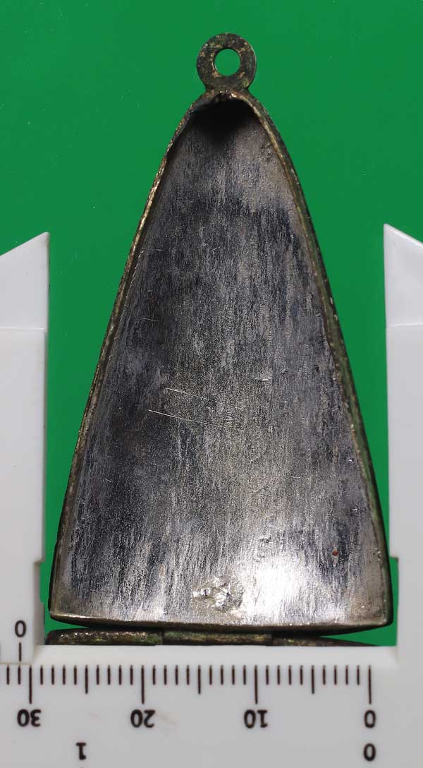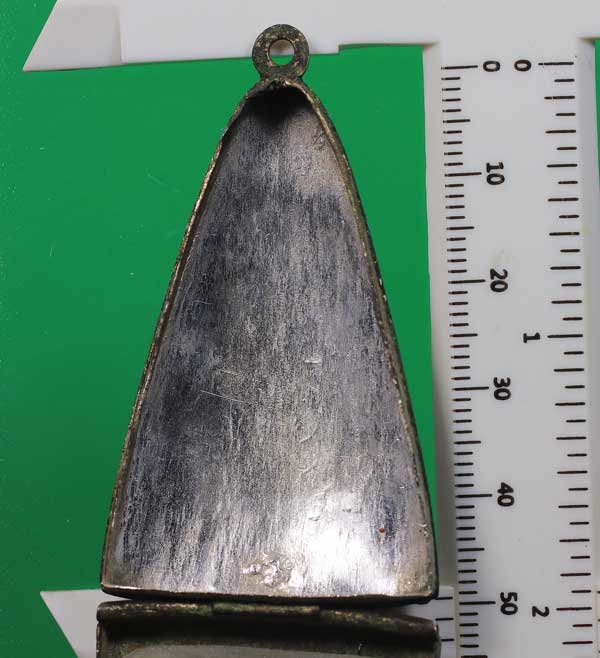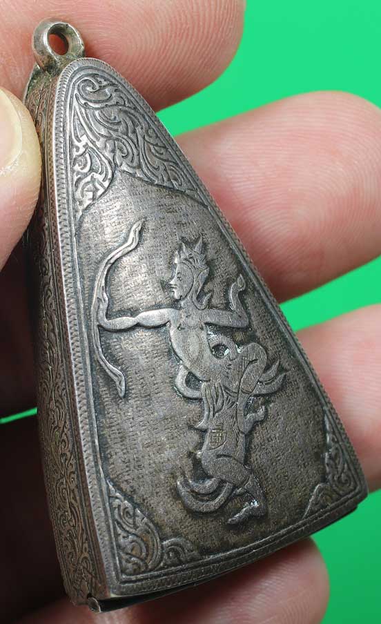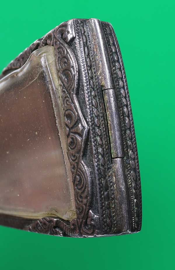 วัดใจ...ตลับเงินเก่า ใส่พระพิมพ์สามเหลี่ยม เปอร์เซนต์สูง งานเก่า (งานแกะฝีมือ เก่าจริง)