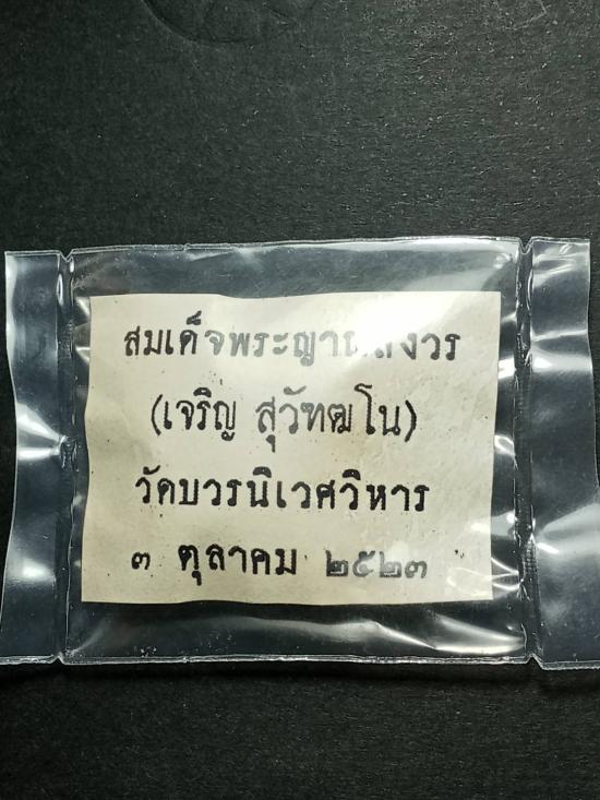 เคาะเดียว ในถุงพลาสติกซีลเดิม พร้อมใบฝอย พระปิดตายันต์ดวงเล็ก ตะกรุดเงิน เนื้อผงใบลานดำเข้ม สมเด็จพระญาณสังวร(เจริญ สุวัฑฒโน ปธ.๙) วัดบวรนิเวศวิหาร ๓ ตุลาคม ๒๕๒๓ |