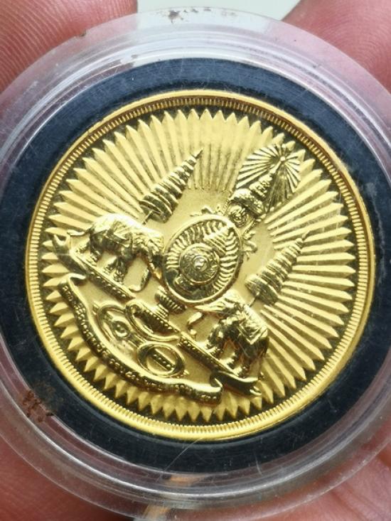 เหรียญตราสัญลักษณ์ กาญจนาภิเษก สองหน้า เนื้อทองชุบ พ.ศ.2539 สภาพสวยเดิมตามรูป ราคาเบาๆ |