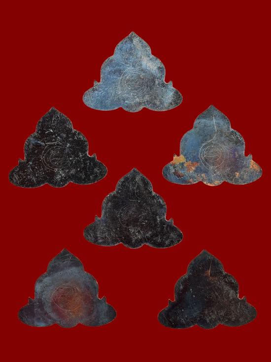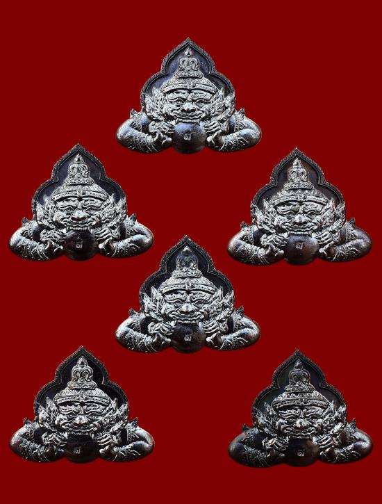 ชุด 6 องค์...เหรียญพระราหูอุ้มชูดวงชะตา เนื้อทองแดง ด้านหลังจารยันต์ ปี 2556 หลวงปู่สมชาย วัดคงคา จ.กาญจนบุรี รุ่นนี้ปลุกเสกปิดท้ายก่อนออกให้บูชา โดยพระเกจิอาจารย์ 5 รูป คือ เจ้าคณะจังหวัดกาญจนบุรี (จุดเทียนชัยนั่งปรก) , หลวงพ่อชำนาญ วัดบางกุฏีทอง , หลวงปู่เพิ่ม วัดป้อมแก้ว , พระครูน้อย วัดชัยมงคล , หลวงปู่สมชาย วัดคงคา (ดับเทียนชัย) พร้อมซองรูปเดิมจากวัด สภาพพระตามรูปที่ลงทุกประการ (ขนาดประมาณ 3.2 x 2.7 ซม.)