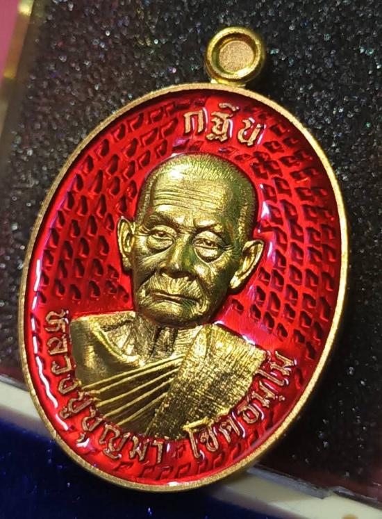 เนื้อชุบทอง ลงยาแดง พร้อมกล่องเดิม No.34 เหรียญกฐินรุ่นสุดท้ายหลวงปู่ |