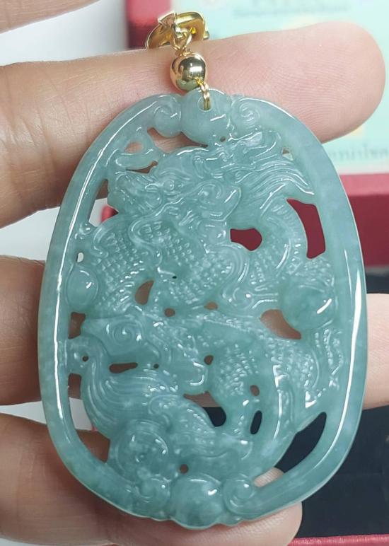 จี้มังกรหยก (มังกรนำโชค) วัดมังกรกมลาวาส (เล่งเน่ยยี) เนื้อหยกสีโอเชี่ยนบลู สวยๆ |