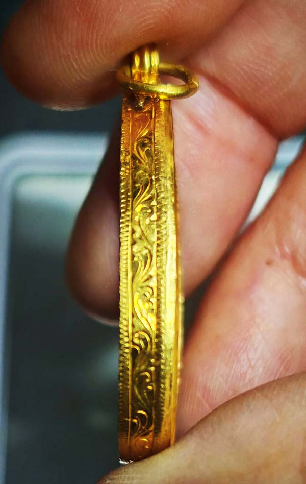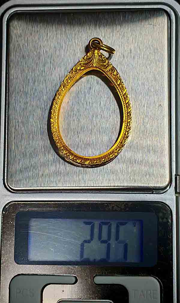 (กรอบสั่งทำ มือ2) ใส่พระคณาจารย์ทั่วไป น้ำหนักทอง 2.95 กรัม กรอบสภาพสวยๆครับ ขนาด กว้าง1.9 cm สูง2.6 cm หนา0.45cm ทองประมาณ80%