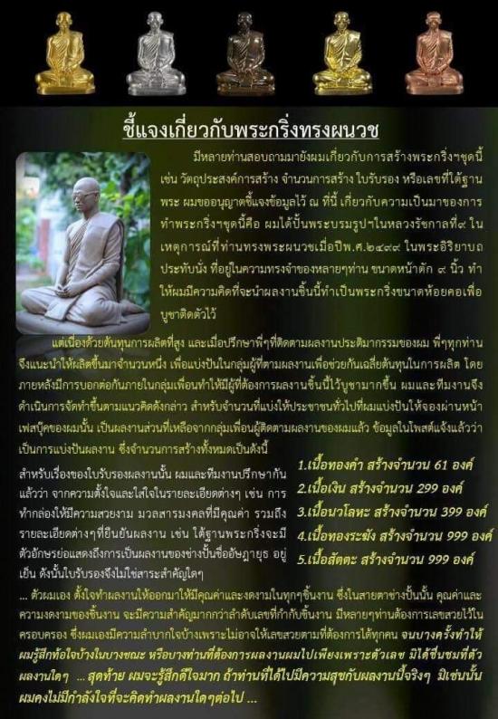 พระกริ่ง "ภูมิพโล ภิกขุ มหาราชา " พระราชาผู้ทรงธรรม ผลงานอาจารย์อัษฎายุธ อยู่เย็น เนื้อทองระฆัง หมายเลข 717 กล่องเดิมครับ |
