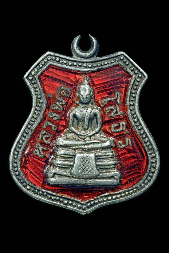 เหรียญพระพุทธโสธร วัดโสธรๆ เนื้อเงินลงยาแดง ปี2509 จ.ฉะเชิงเทรา ยาไม่มีกระเทาะ พร้อมบัตร