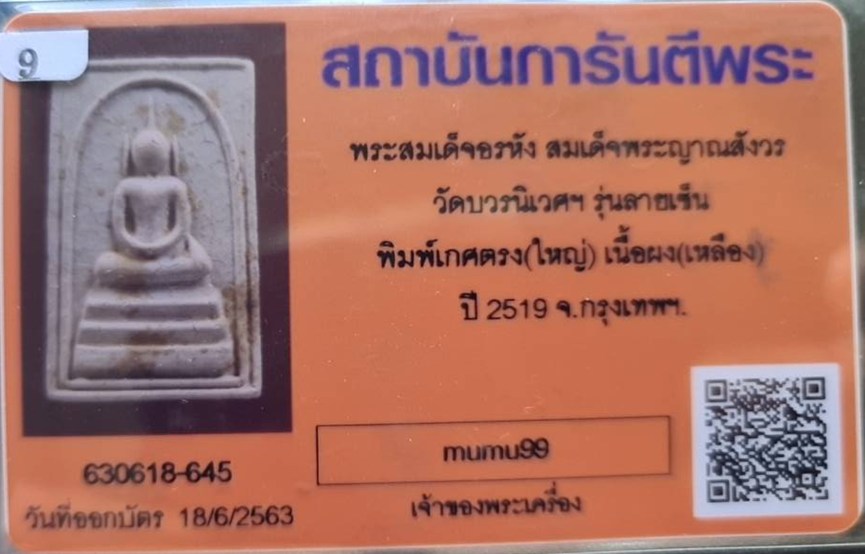 @# พระสมเด็จ อรหัง สมเด็จญาณสังวร พิมพ์เกศตรง หลังลายเซ็นต์ เนื้อผงเหลือง..พ.ศ.2519 พร้อมบัตรรับรอง เป็นพระออกวัดบวรนิเวศน์ปีลึกๆ......พระแท้นิยมมาตรฐานสากล มีรายการประกวดมาตรฐาน...นิยมเล่นหาในวงการกั |