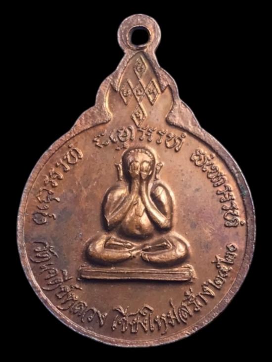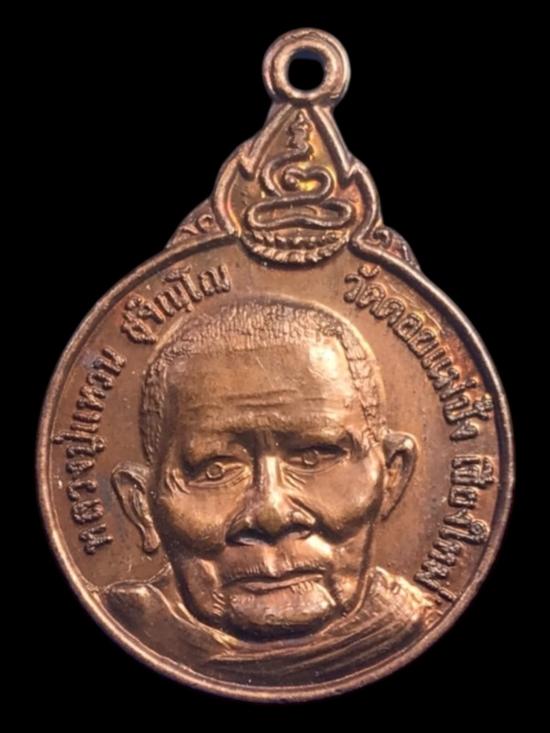 เหรียญหลวงปู่แหวน สุจิณโณ วัดดอยแม่ปั๋ง ออกวัดเจดีย์หลวง จ.เชียงใหม่ ปี2520 เนื้อทองแดง หลังพระปิดตา |