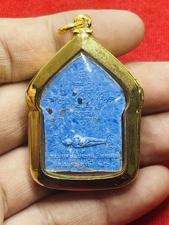ขุนแผนเสือนอนกิน สายรุ้งเขียวเจ้าน้ำเงิน ตะกรุด3Kอกฝั่งพลอย หลังโรยพลอยเสก (เลี่ยมกรอบ)