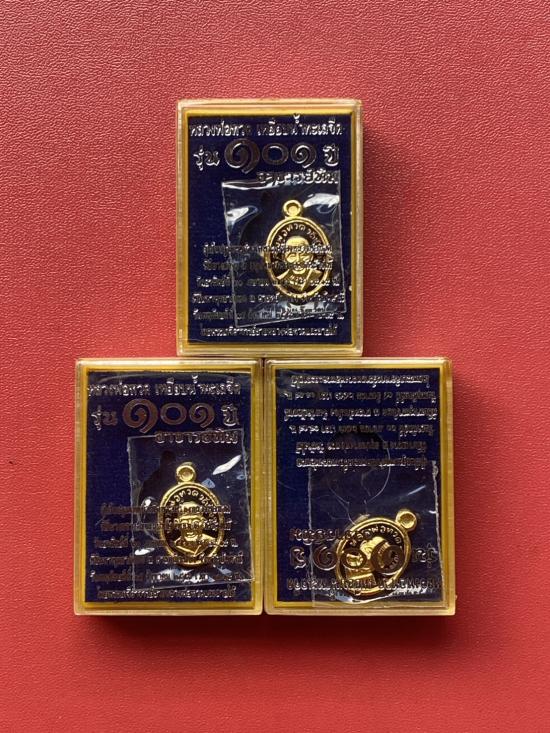 เคาะเดียวแดง เม็ดแตง 3องค์หลวงปู่ทวด รุ่น101ปี เนื้อ ชุบทองลงยาดำ