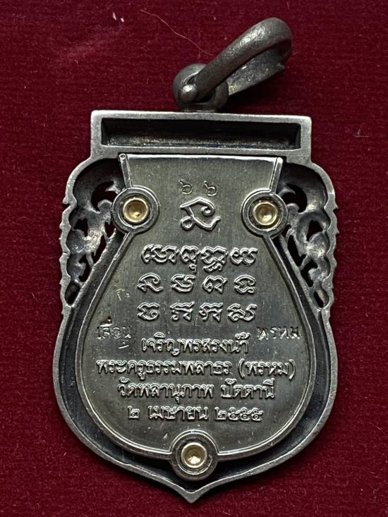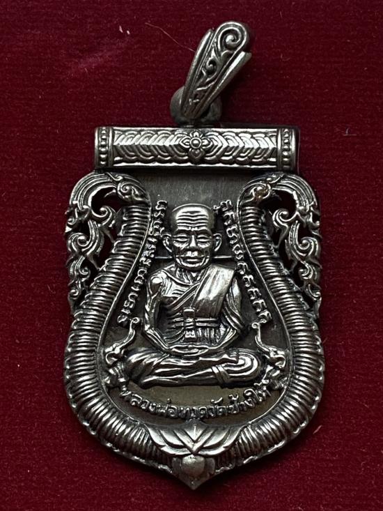 เคาะเดียวแดง หลวงปู่ทวด พิมพ์หน้าเลื่อน รุ่น เจริญพรสรงน้ำ เลข66 เนื้อ บรอนชุบเงินโบราณ