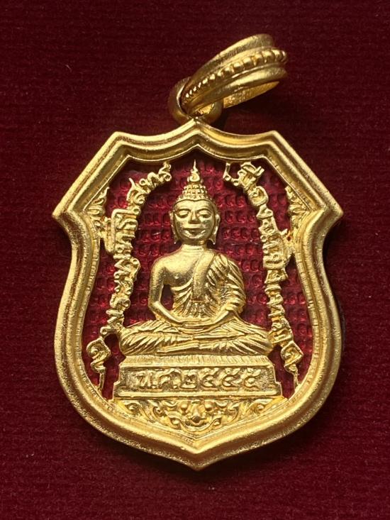 เคาะเดียวแดง เหรียญอาร์มหลวงพ่อโสธร รุ่นมหามงคลย้อนยุค เลข 222 เนื้อ ชุบทองลงยาแดง
