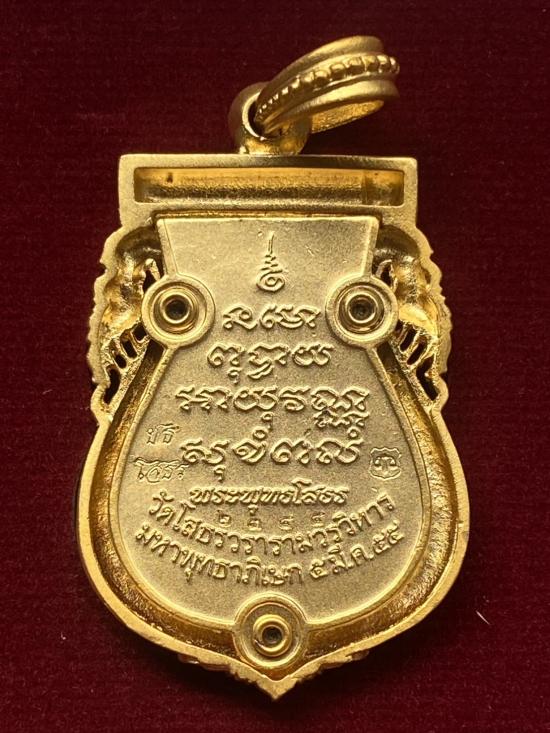 เคาะเดียวแดง เหรียญเสมาหลวงพ่อโสธร รุ่นมหามงคลย้อนยุค เลข 2345 เนื้อ ชุบทองลงยาธงชาติ
