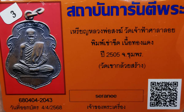 เหรียญรุ่นแรก หลวงพ่อสงฆ์ วัดเจ้าฟ้าศาลาลอย พิมพ์เข่าขีด เนื้อทองแดง ห่วงเดิม ปี2505 จ.ชุมพร(วัดเขากล้วยสร้าง)+ บัตรG-pra สภาพเดิมค่ะ สภาพตามรูปทุกประการค่ะ |