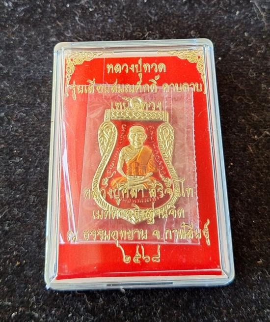 วัดใจ หลวงปู่ทวด หลวงปู่ศิลา เมตตาอธิษฐานจิต รุ่นเลื่อนสมณศักดิ์ เหนือดวง เนื้อทองทิพย์ ลงยา No.124 |